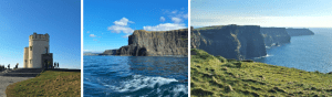 (Rita) Els caps de setmana els aprofitàvem sortir a explorar Irlanda amb la meva família d’acollida. Un d’ells vam anar a veure els “Cliffs of Moher” uns penya-segats espectaculars. Primer vam anar amb cotxe fins a un port on vam esperar el vaixell que ens va portar a veure els penya-segats des del mar, allà també ens van ensenyar uns ocells característics d’allà els “Puffins”. A continuació, vam fer una paradeta a agafar gelats i menjar i vam anar a menjar dins del cotxe aparcat al costat del mar. Després, vam anar amb cotxe fins a dalt dels “Cliffs” i ho vam visitar. També vam entrar al “O’Brien’s Tower” que està allà dalt dels penya-segats. També vam parar a algunes paradetes d’allà a comprar “souvenirs”. Em van semblar precioses les vistes i definitivament hi tornaria.