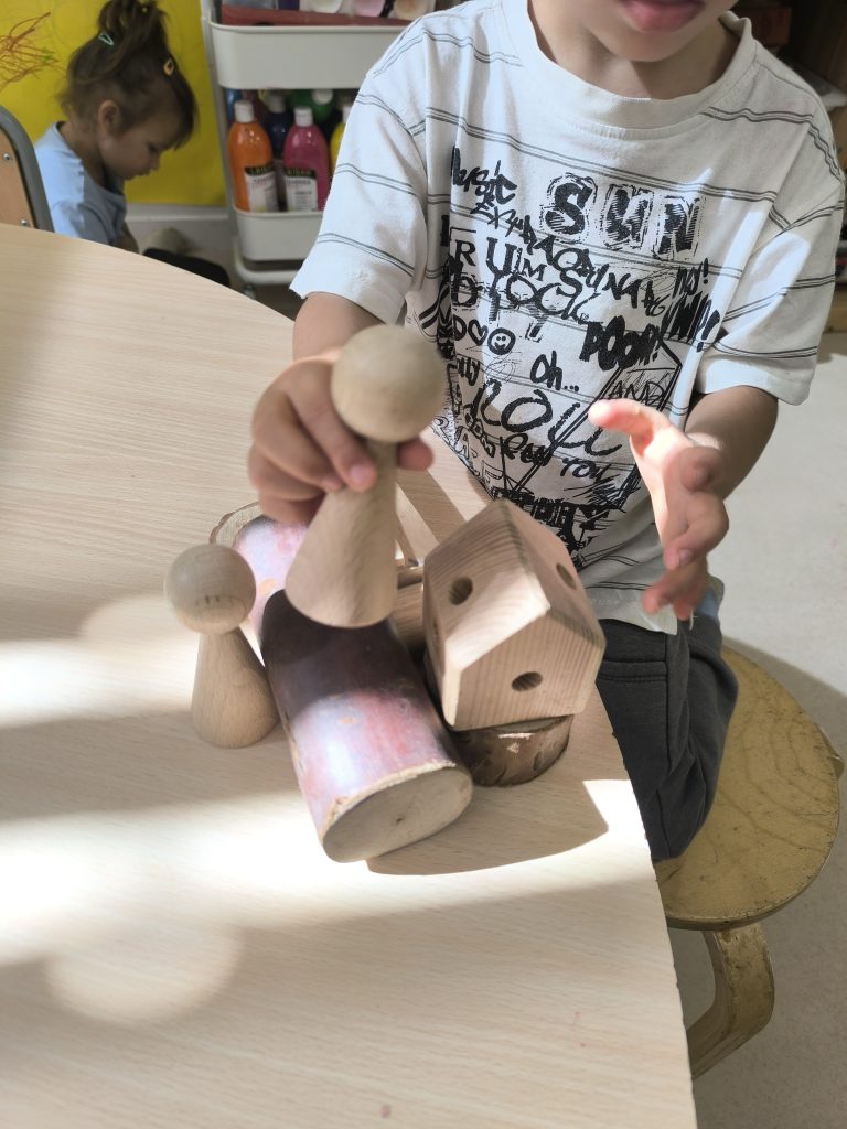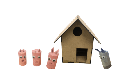 Per començar el nostre projecte artístic de l’arquitectura, vam fer una lectura compartida del conte “Els tres porquets”. Va ser molt divertit ajudar al llop a bufar ben fort entre tots i totes per tirar les cases. Vam comprovar com la palla és lleugera i se’n va fàcilment amb el vent, la fusta és més resistent i finalment, els maons són els que aguanten més. Després d’escoltar la història, vam poder jugar amb els 3 porquets i el llop i seguir representant la història a través del joc simbòlic. Ens va encantar.