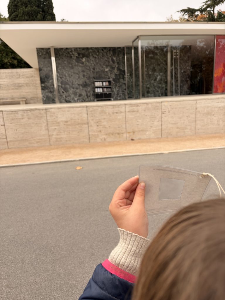 Una vegada esmorzats a l’interior, resguardant-nos del matí gèlid, vam continuar la ruta per passejar per tots els edificis comentats des de les altures, observant-los al detall. Després, vam anar fins al pavelló alemany, conegut també pel nom del seu arquitecte: mies van der rohe.